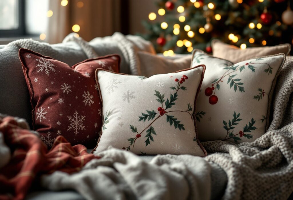 Une des clés pour réussir votre décoration de Noël réside dans l’art de mélanger les styles. N’hésitez pas à combiner des motifs traditionnels avec des touches modernes ou minimalistes. Par exemple, associez une housse de coussin aux motifs de rennes avec une autre ornée d’une impression géométrique scintillante.