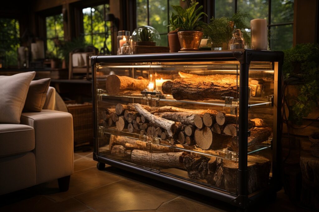 - Utilisez des matériaux différents : Le bois et le métal sont des choix traditionnels pour les porte-bûches, mais vous pouvez également opter pour des matériaux moins courants, comme le cuir, l’acier inoxydable ou des tuyaux en PVC.