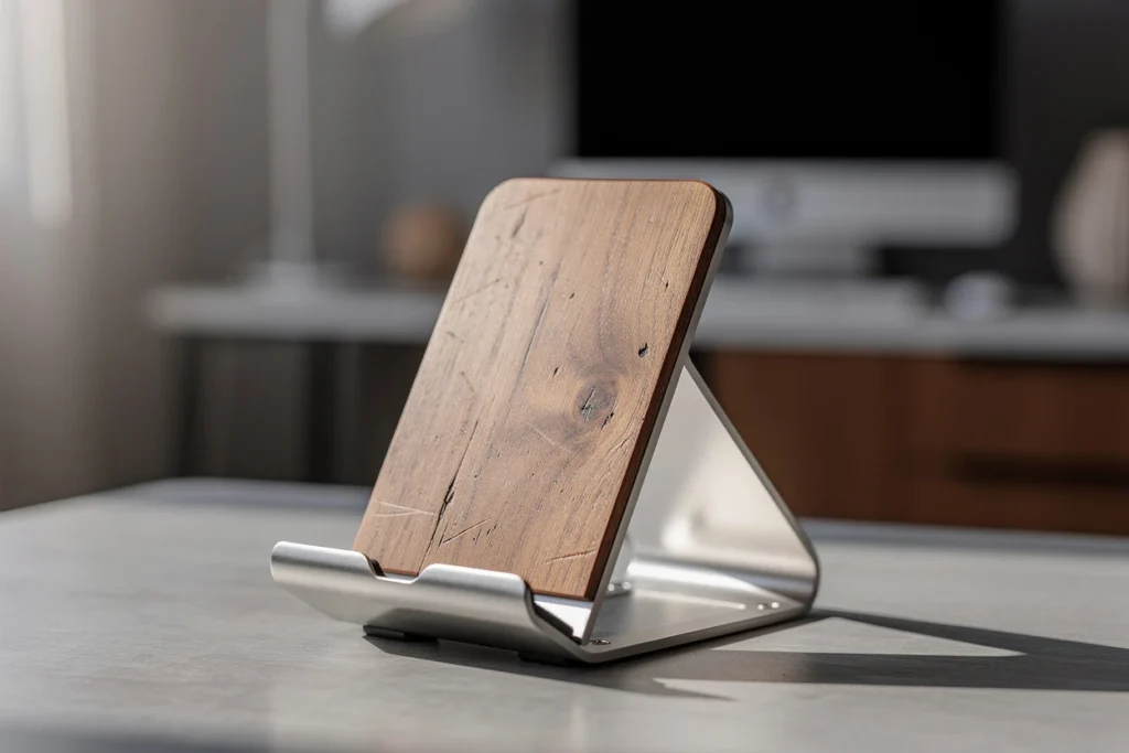 Un support de téléphone design se distingue souvent par le choix des matériaux. Le bois massif, travaillé avec finesse, apporte une touche chaleureuse et naturelle, alors que le métal brossé affiche une allure contemporaine et industrielle. Pour ceux qui préfèrent une ambiance épurée, les modèles en acrylique transparent ou en résine offrent légèreté visuelle et discrétion.